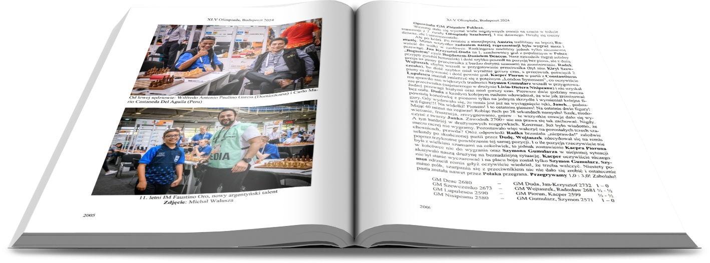 New e-book premiere – a complete chronicle of the 45th Chess Olympiad spanning over 4,000 pages! This monumental work by Krzysztof Puszczewicz has seen the light of day. The Polish edition includes a bonus – coverage of the Polish Women’s National Team.