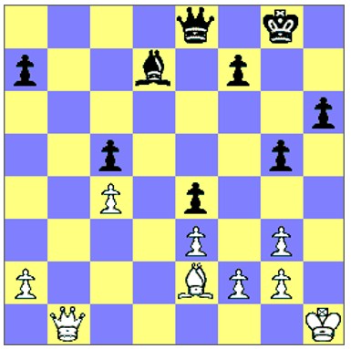 In the game Rubtsova – Gresser, the Moscow chess player obtained a better position and had two active Bishops. Gresser managed to exchange one of them, but in seeking simplifications, the American allowed the enemy Queen to penetrate into her camp. The USSR champion, thanks to this maneuver, won the "a" Pawn. The resulting position, however, was still unclear. White correctly did not allow the exchange of Queens, since with opposite-colored Bishops, Black had enormous chances for a draw. Rubtsova accurately assessed the position, steered the game into a Queen endgame, and her passed "a" Pawn advanced all the way to the promotion square. Gresser lost.